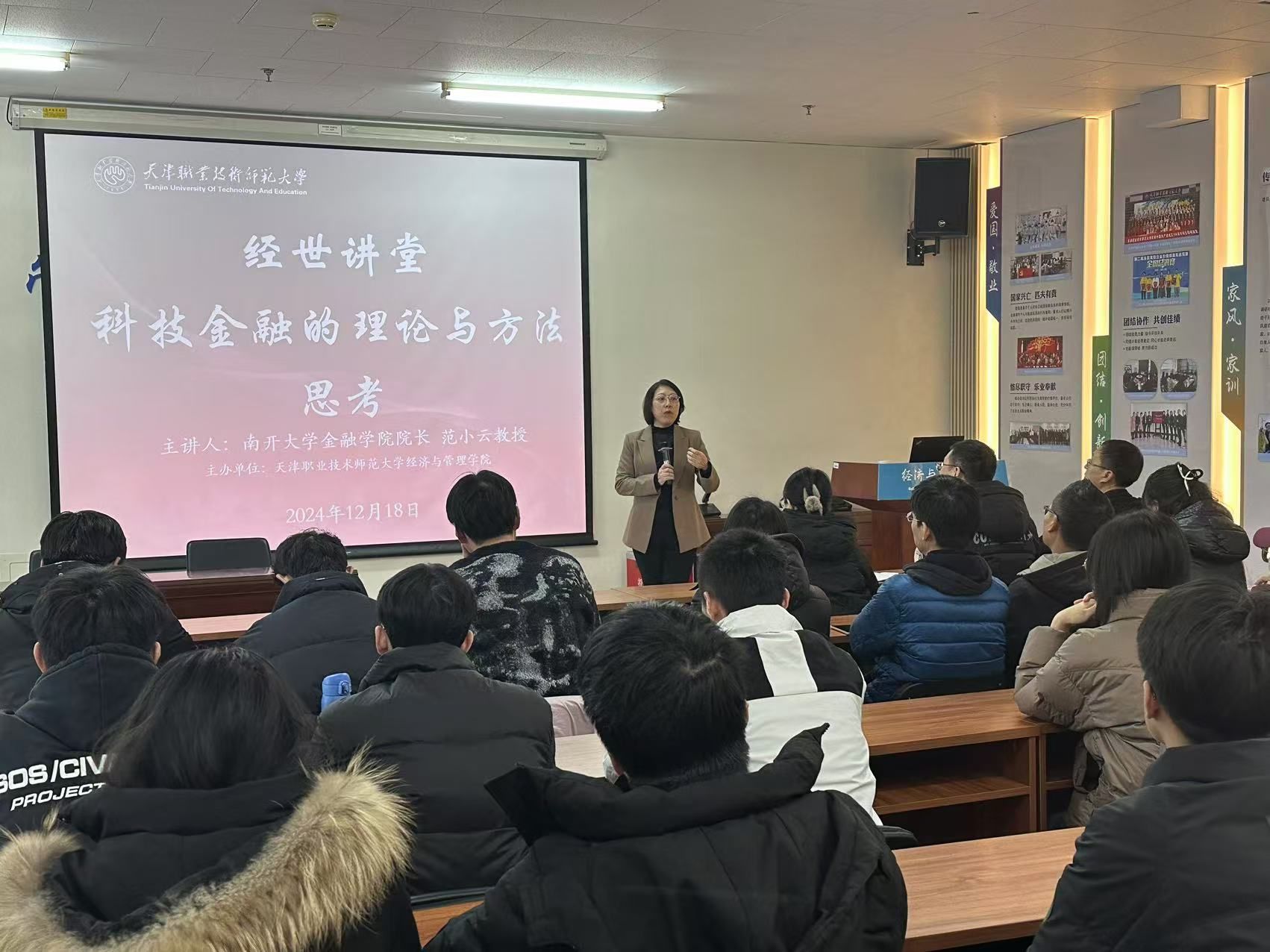 12月18日,太阳成集团tyc9728在第一教学楼701室举办“经世讲堂”第九讲,邀请南开大学金融学院经理、全国政协委员范小云教授作“科技金融的理论与方法思考”主题讲座。讲座由副经理董树功主持,部分教师和金融专业研究生参加。